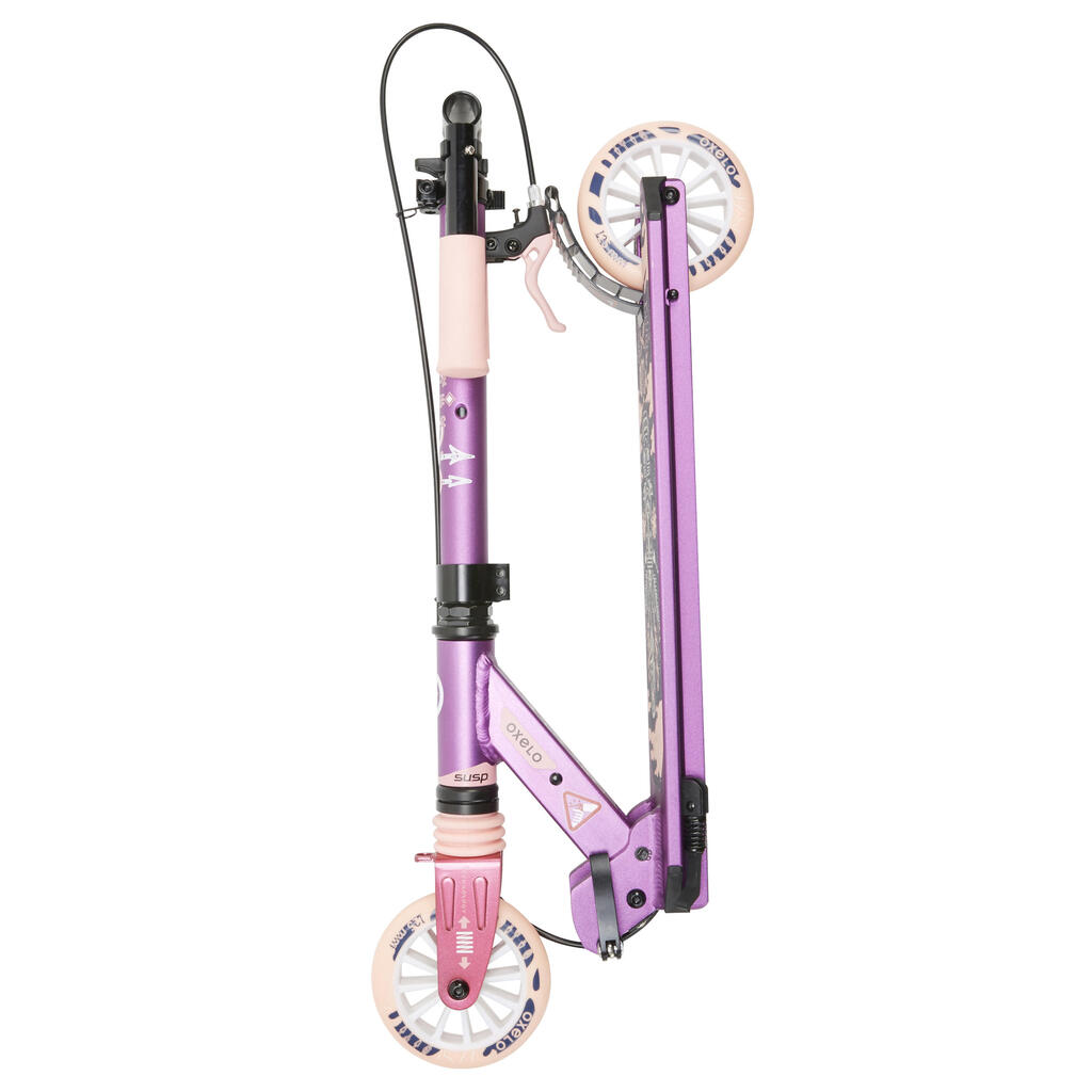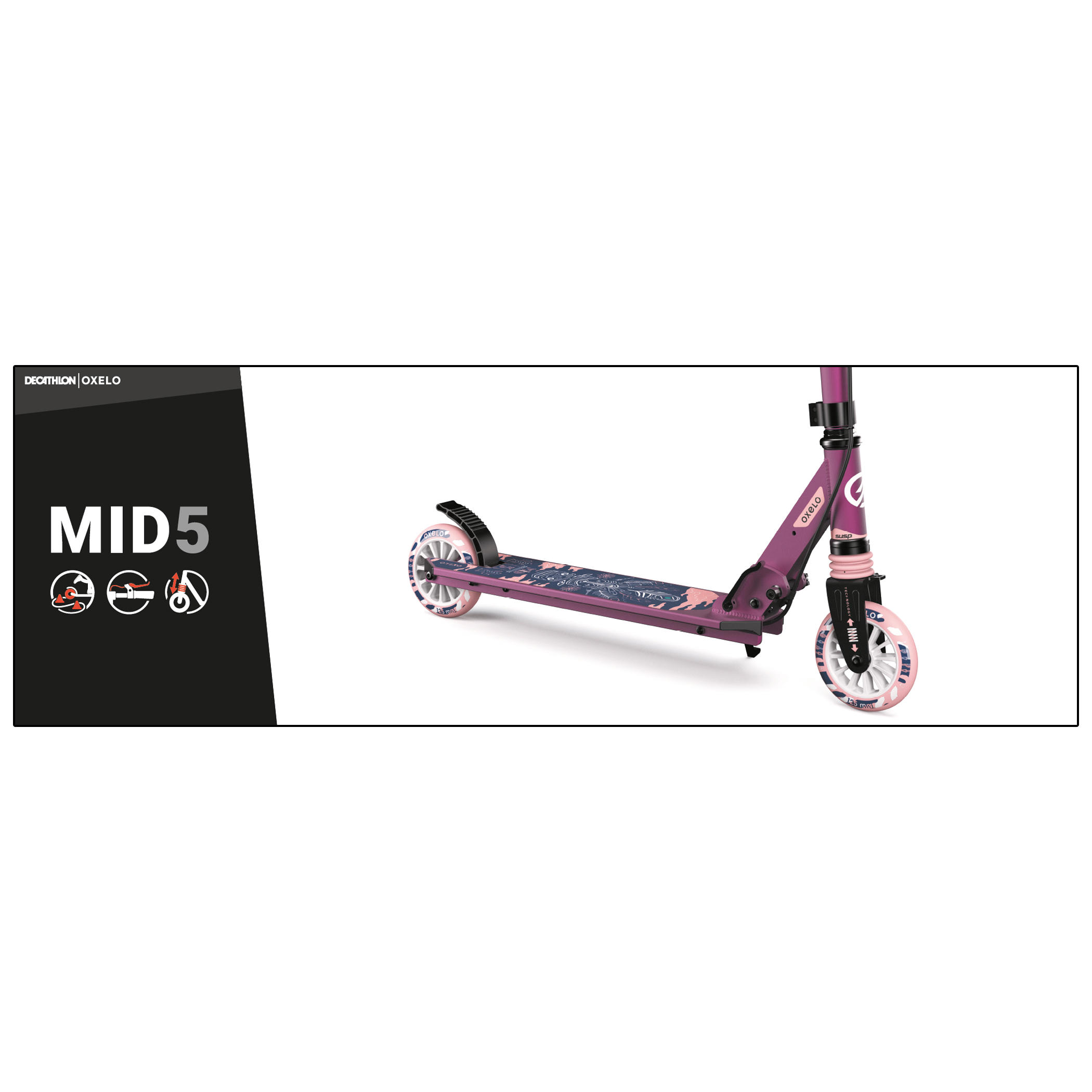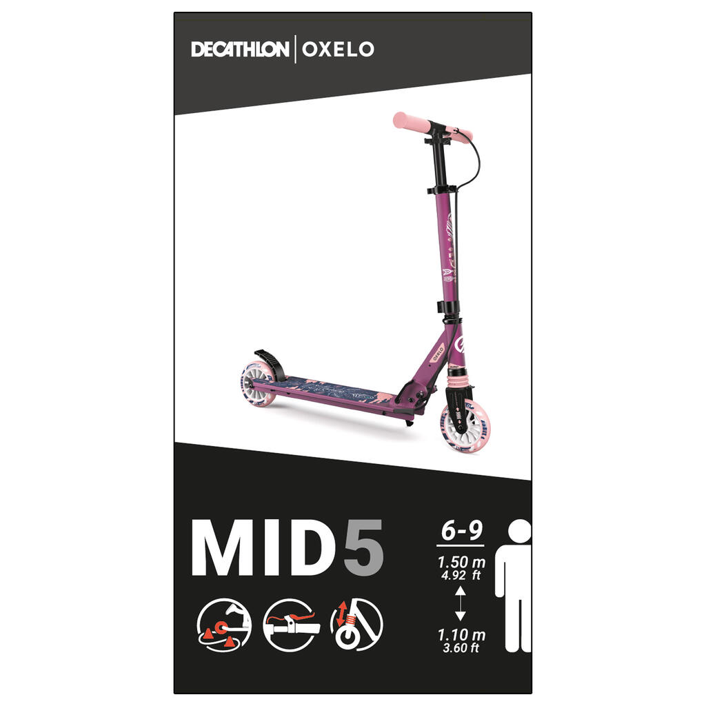 La trottinette MID5, idéale pour les enfants de 6 à 9 ans, est équipée d'un frein au guidon pour contrôler sa vitesse encore plus facilement et d'une suspension avant pour plus de confort !