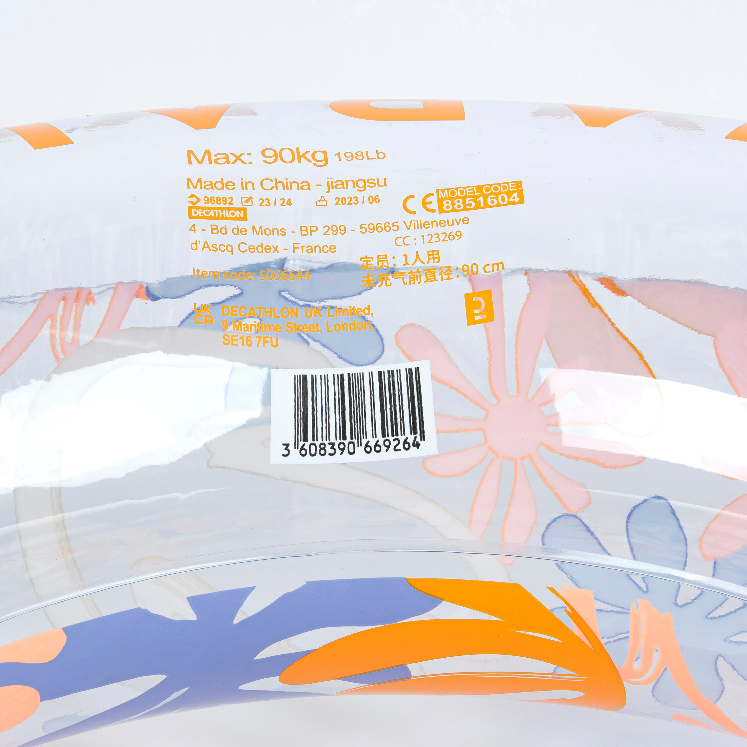 Bouée piscine gonflable imprimée grande taille 92 c m avec poignées