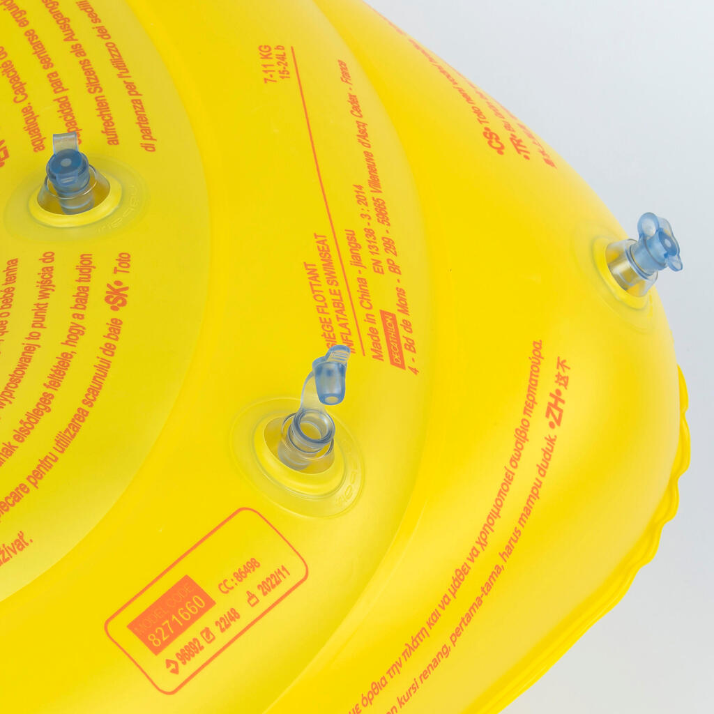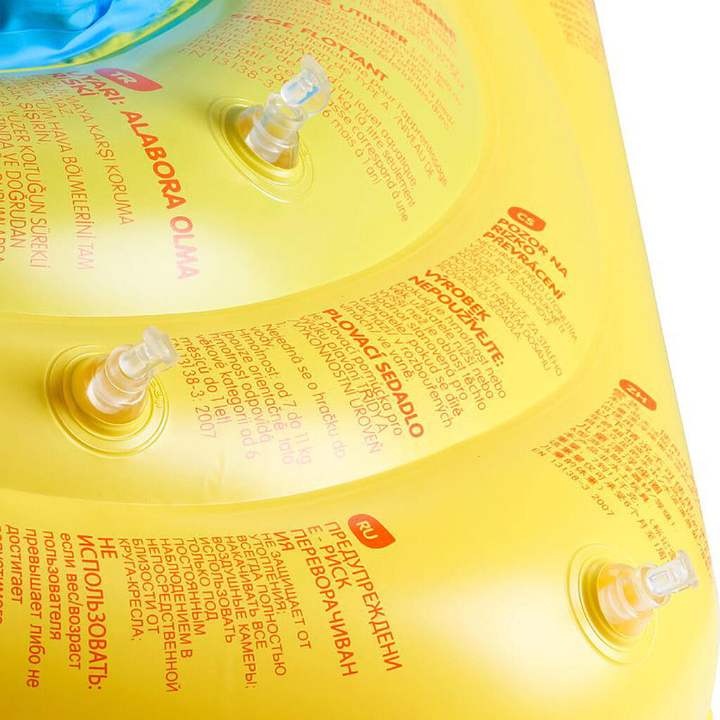 La bouée siège de piscine conçue pour le bébé de 7 à 11 kg en phase d'éveil et de découverte de l'eau.