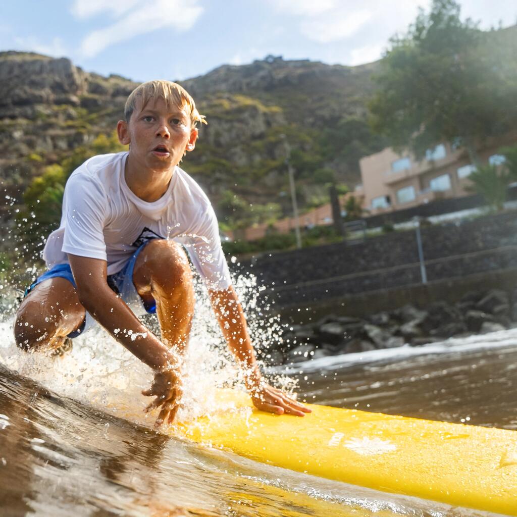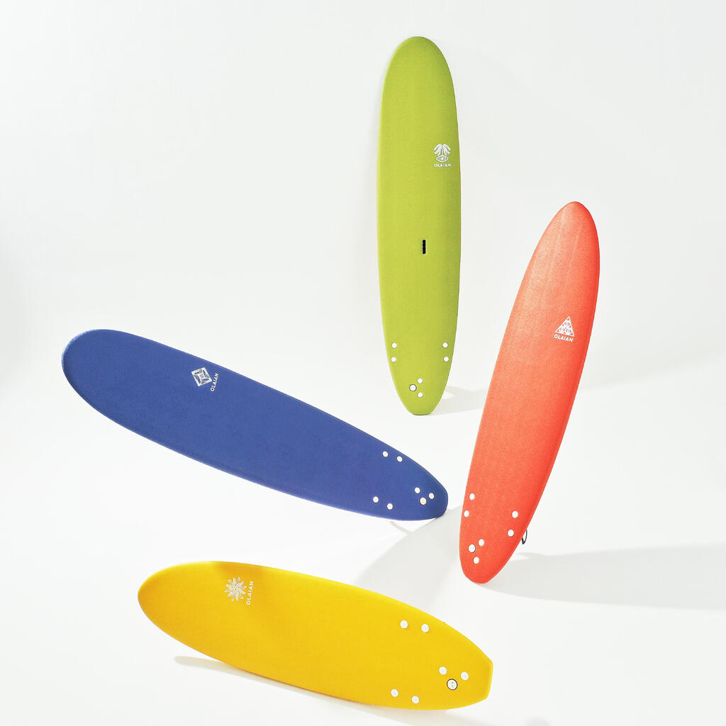 Cette planche de surf en mousse de 6' offre stabilité et maniabilité pour la progression des enfants dans les petites vagues. Robuste, elle convient aux experts légers. Leash et ailerons fournis.