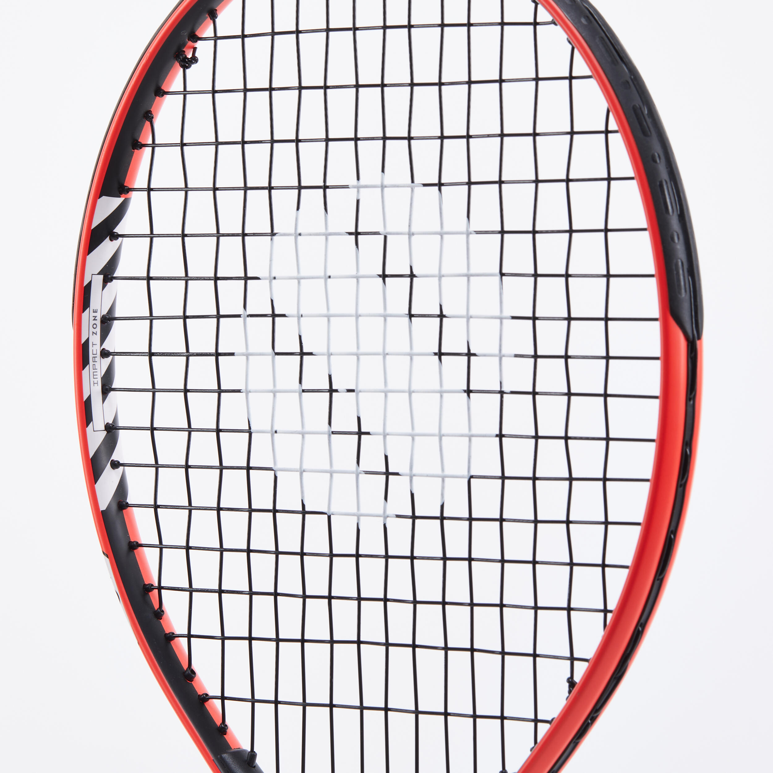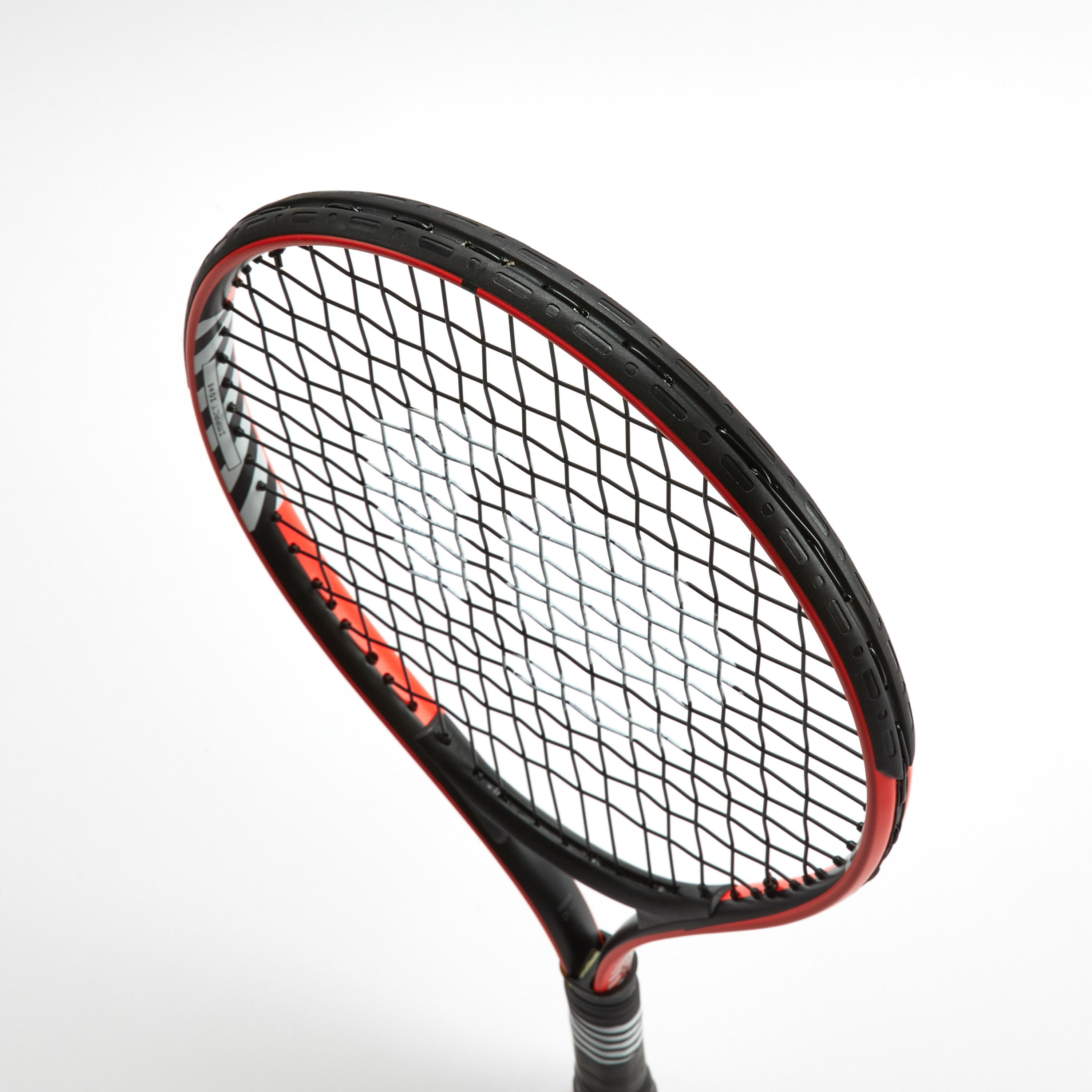 En essayant de faire frapper la balle sur ce marquage, votre enfant va se concentrer pour bien centrer la balle dans le tamis et avoir une bonne position de sa raquette.