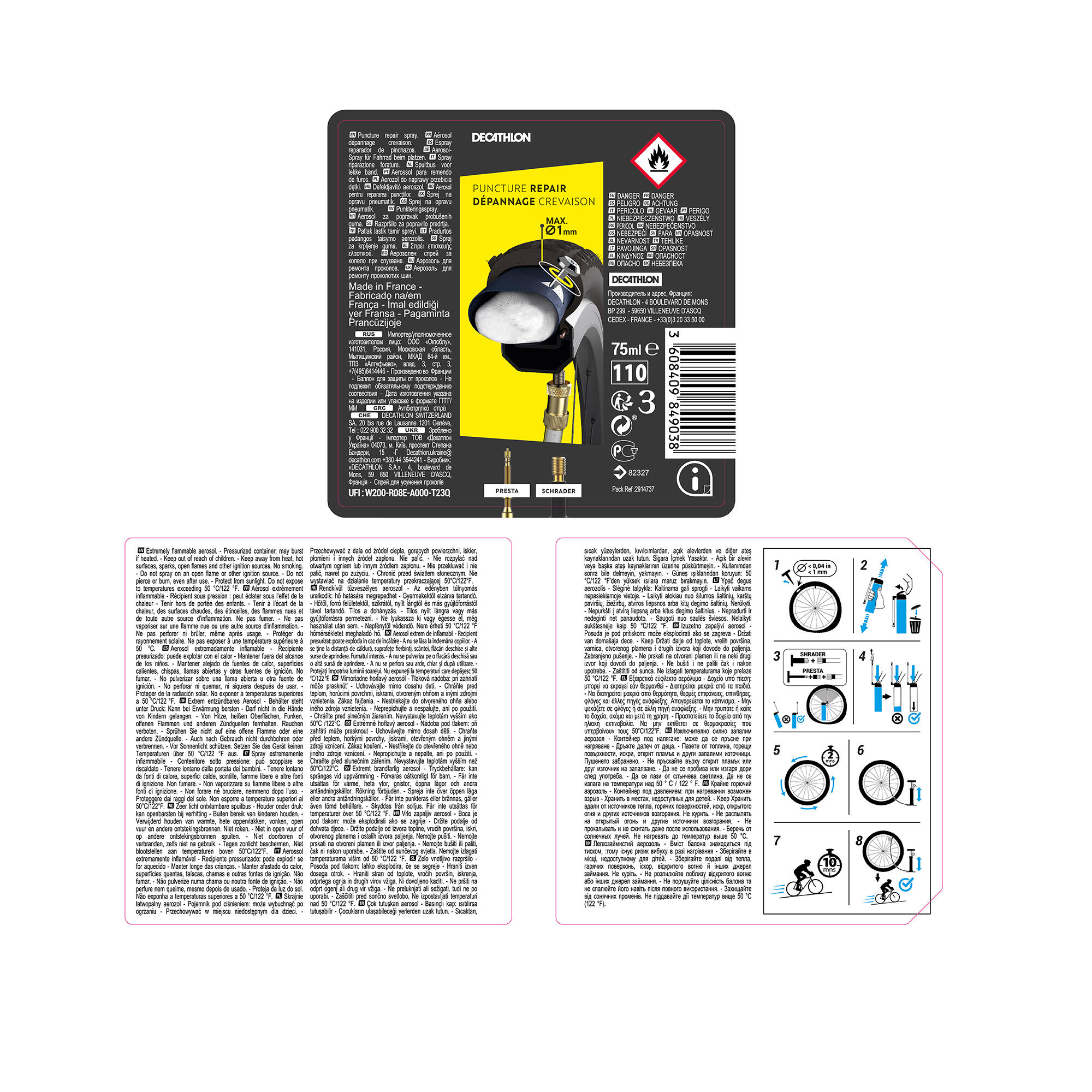 Conçu pour réparer et regonfler instantanément sans outil vos chambres à air crevées.