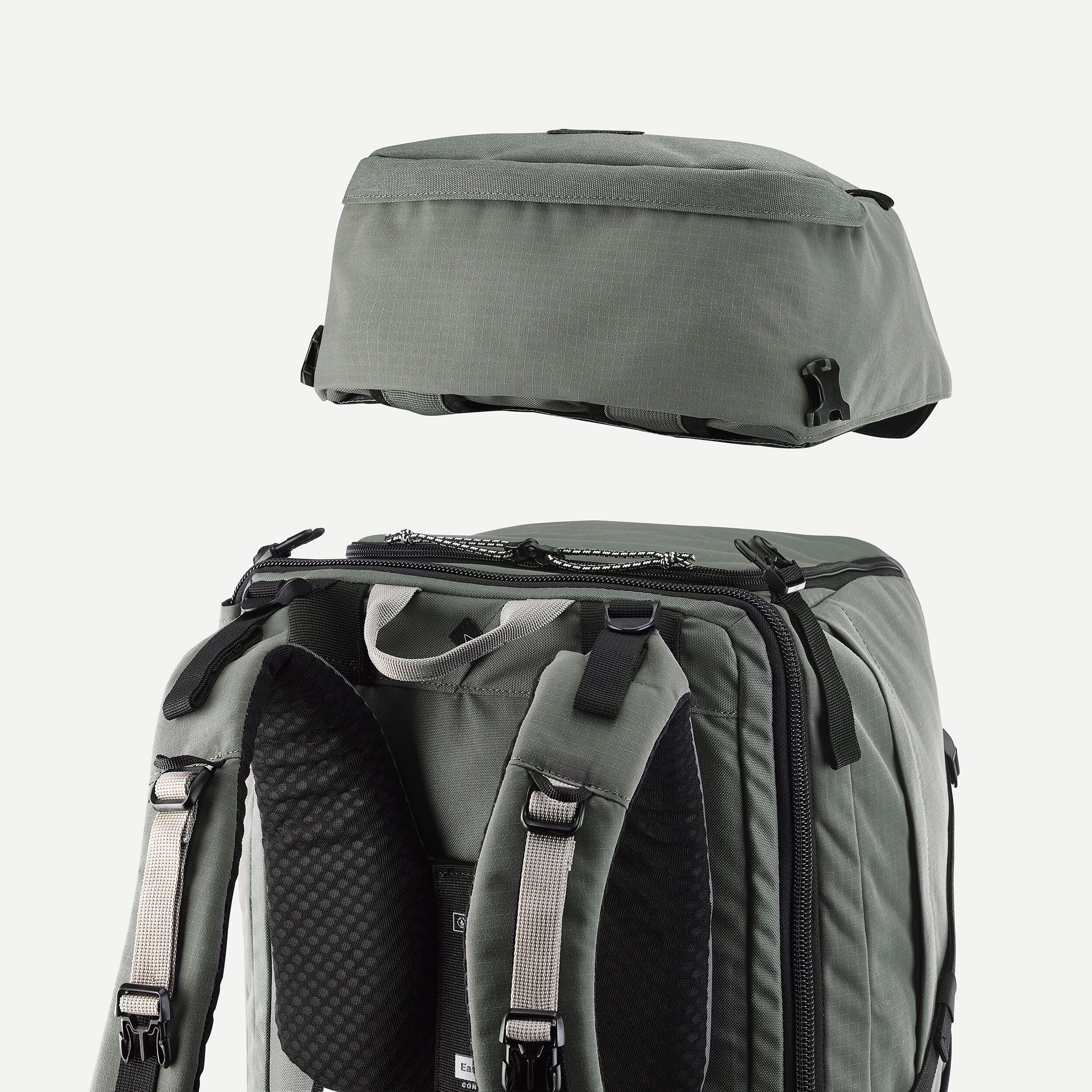 Ce sac à dos est doté d'une grande ouverture intégrale dans le dos du sac pour faciliter l'accès au compartiment principal. Un compartiment de 6L est détachable pour en faire un sac d'appoint.