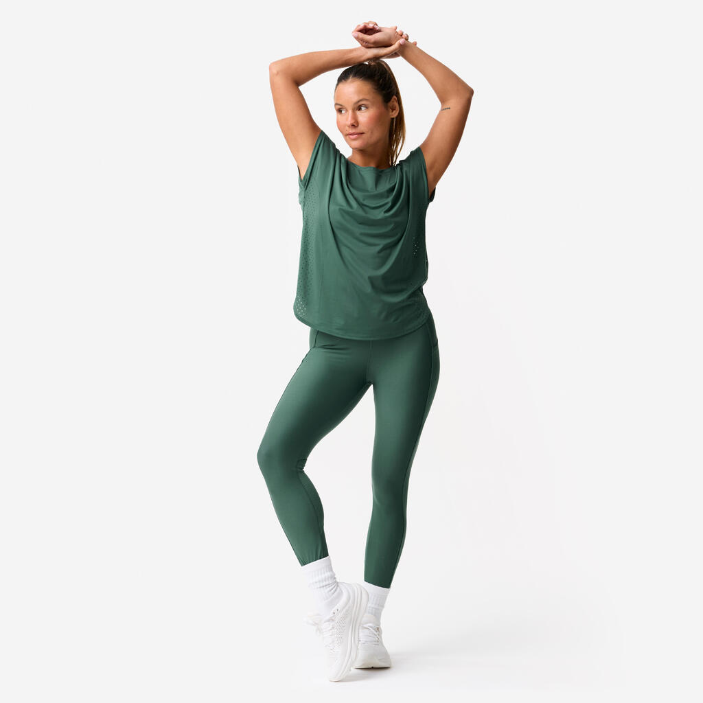 Respirant, extensible et avec une ceinture élastiquée à taille haute, ce legging mise sur le confort. Il ne néglige pas le pratique avec sa poche pour téléphone.