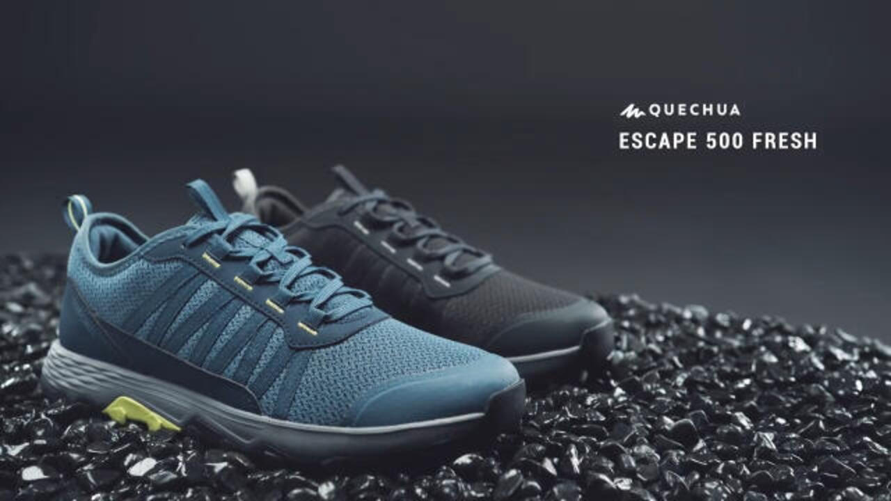 Nos concepteurs randonneurs ont développé ces chaussures Escape 500 Fresh pour vos randonnées régulières sur sentiers pédestres par temps chaud.