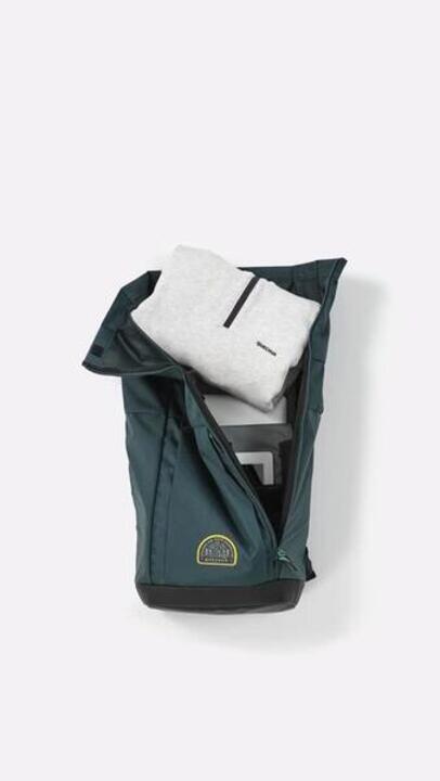 Grâce au roll-top, passez en un geste de 23 à 27 L. Démarrez compact, finissez XXL : votre sac évolue avec vos aventures. Ce compartiment bonus de 4 L se déroule et s'ouvre avec un zip. Vous souhaitez repasser à la version compacte. Pliez simplement et fermez avec la sangle.