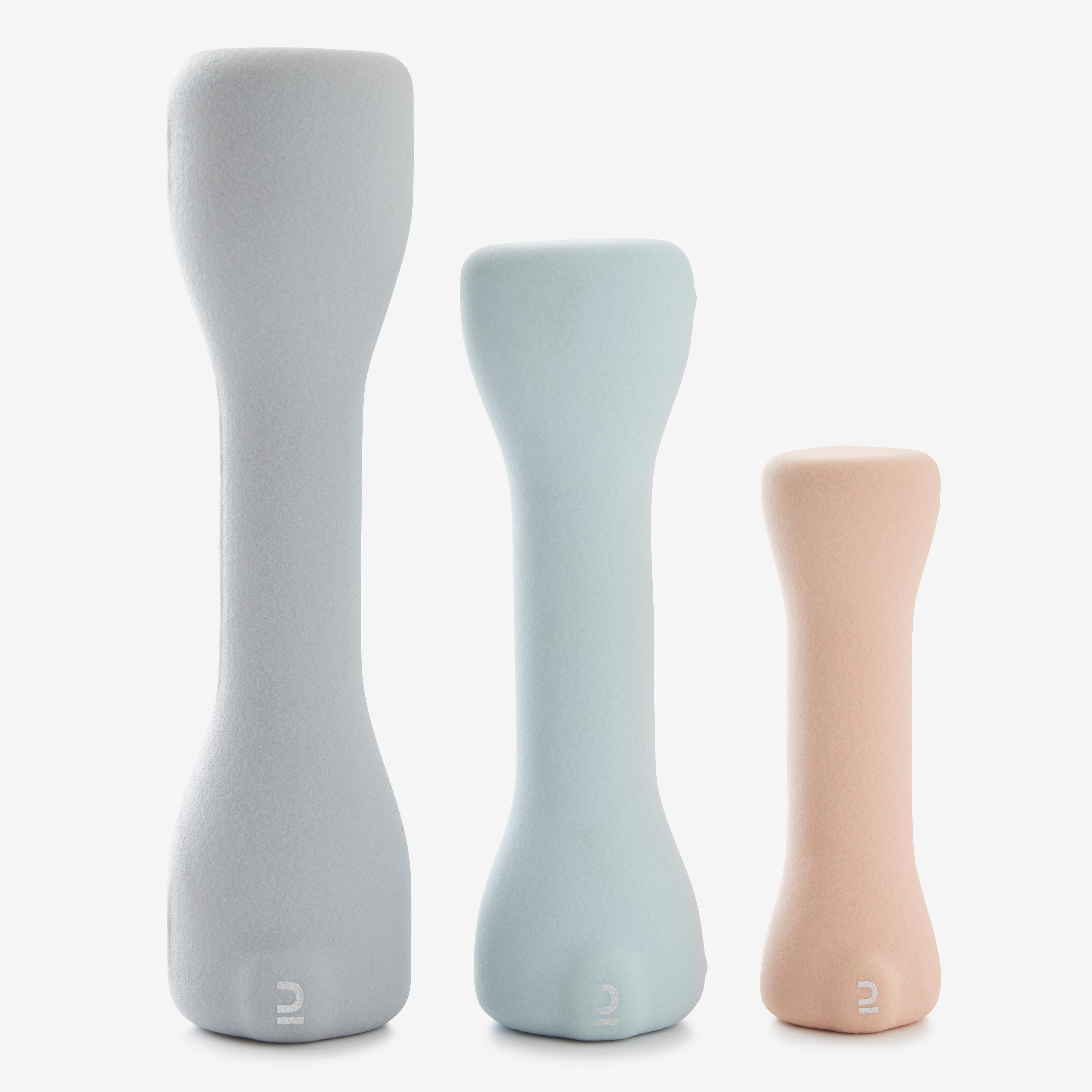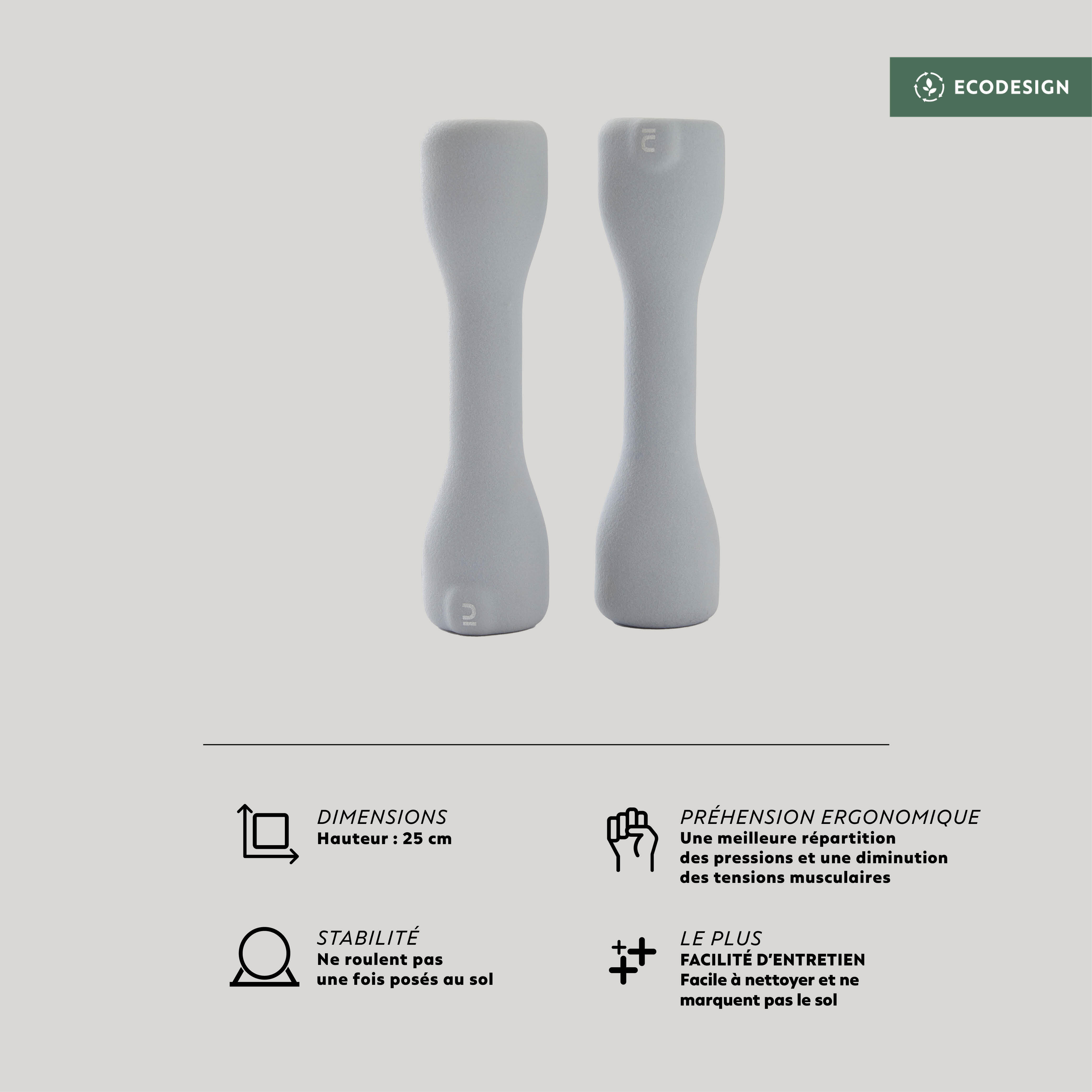 Haltères 3 kg ergonomiques et dessinées pour se fondre dans votre salon. Séances de coaching via Qr code. Existe en 1 et 2 kg.