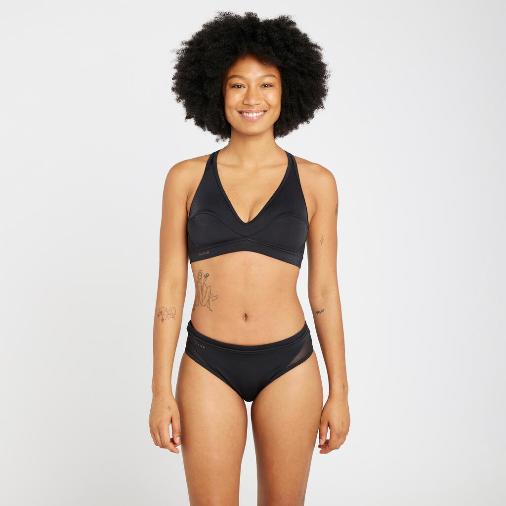 Ce haut de maillot adapté aux grandes tailles offre un dos croisé assurant une excellente tenue. La stabilité est garantie, pour toutes les morphologies, grâce à un large élastique sous poitrine.