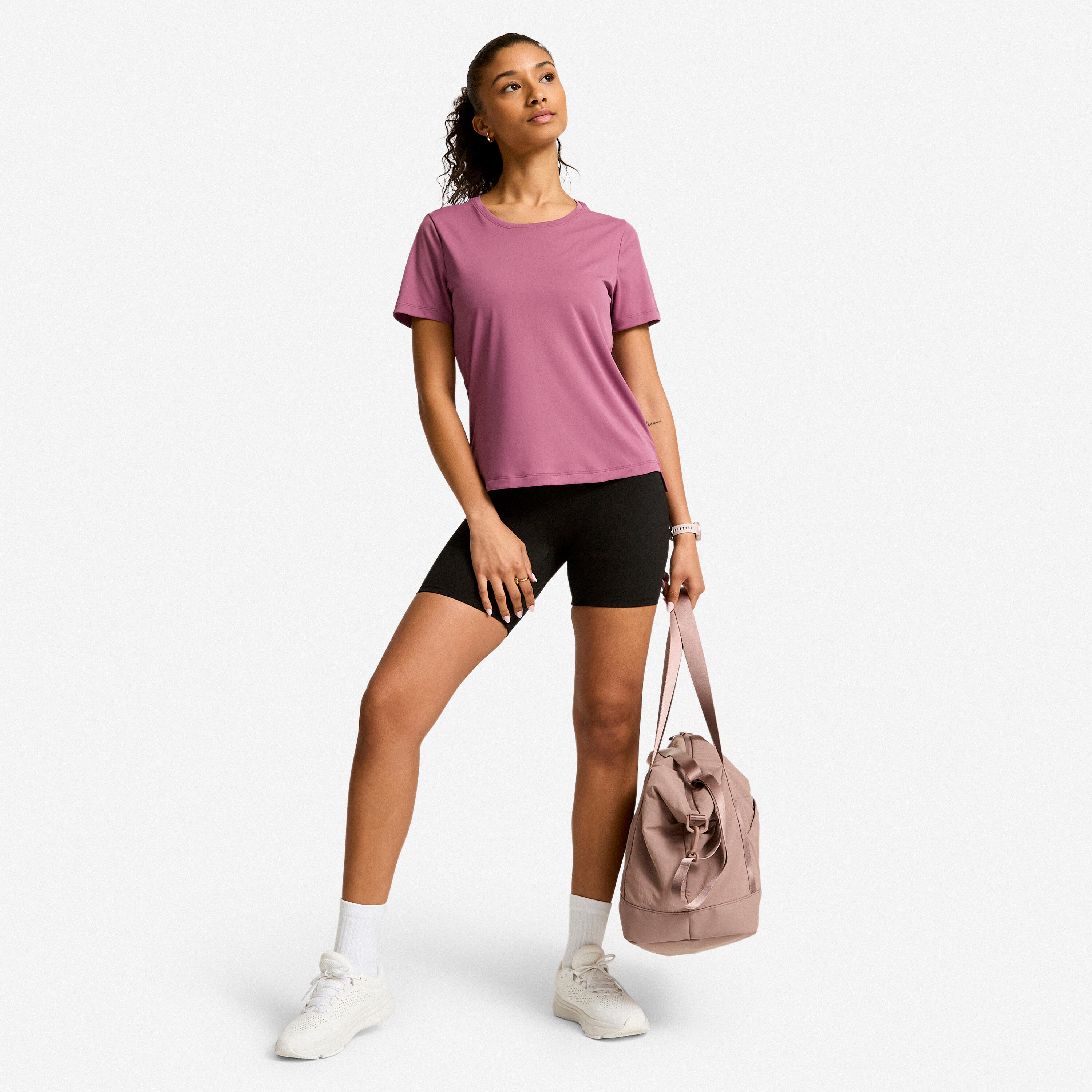 Ce T-shirt de fitness combine une coupe travaillée pour favoriser la liberté de mouvement et une matière légère et respirante. Il évacue la transpiration pour assurer votre confort.