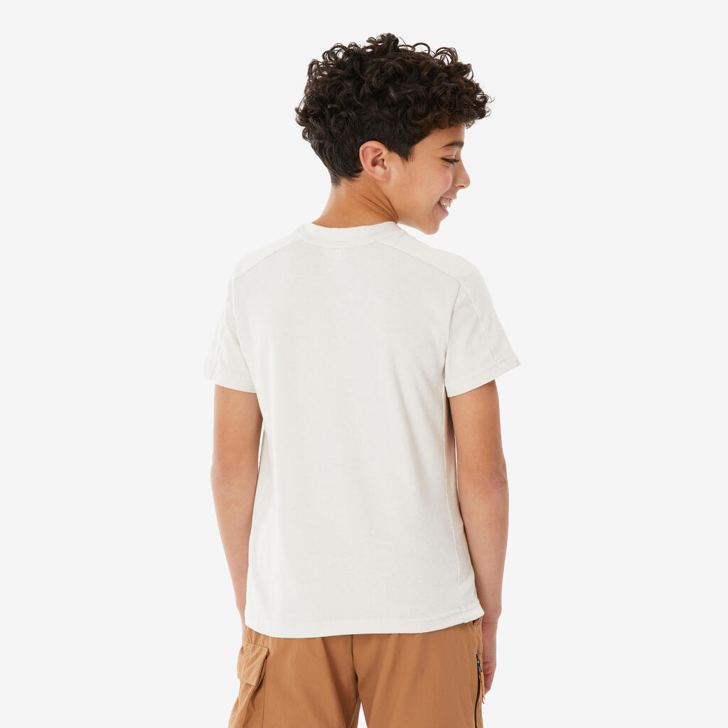 Pour le confort de vos enfants, ce t-shirt de randonnée est composé d'un tissu respirant qui permet de mieux évacuer la transpiration. Ils restent ainsi au sec, même en plein effort.