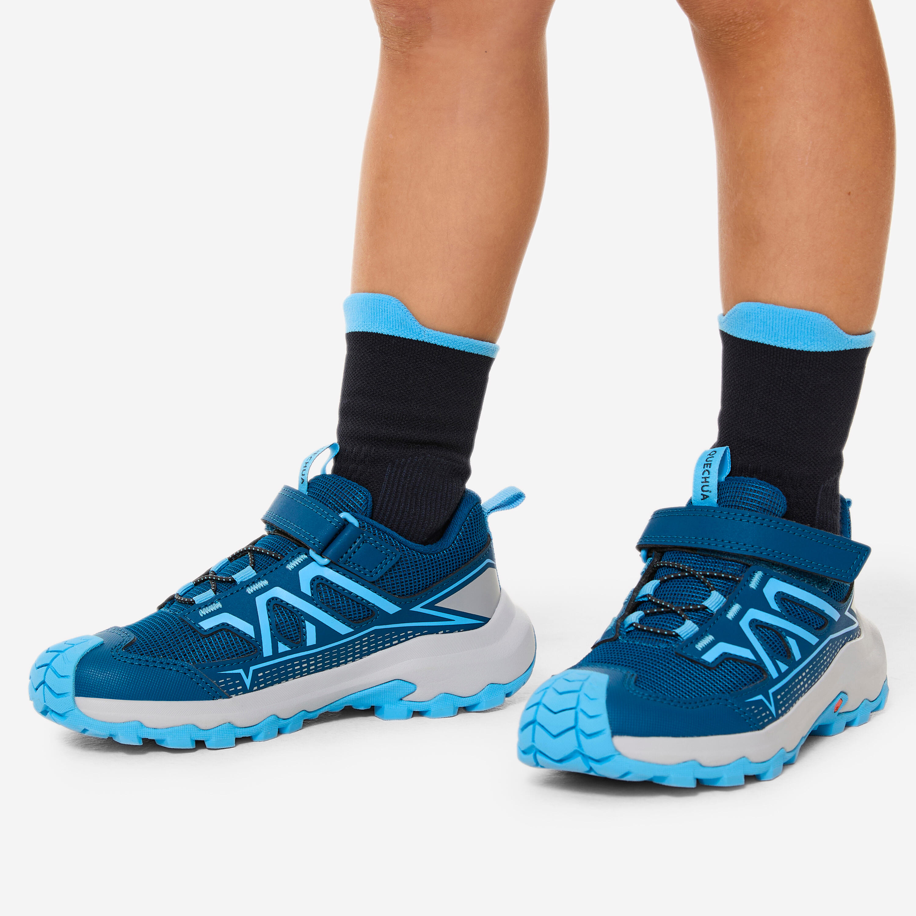 Ces chaussures de randonnée à laçage rapide offrent adhérence et respirabilité aux enfants. La tige basse libère la cheville pour courir, grimper, sauter sur terrains variés. Elles sont résistantes.