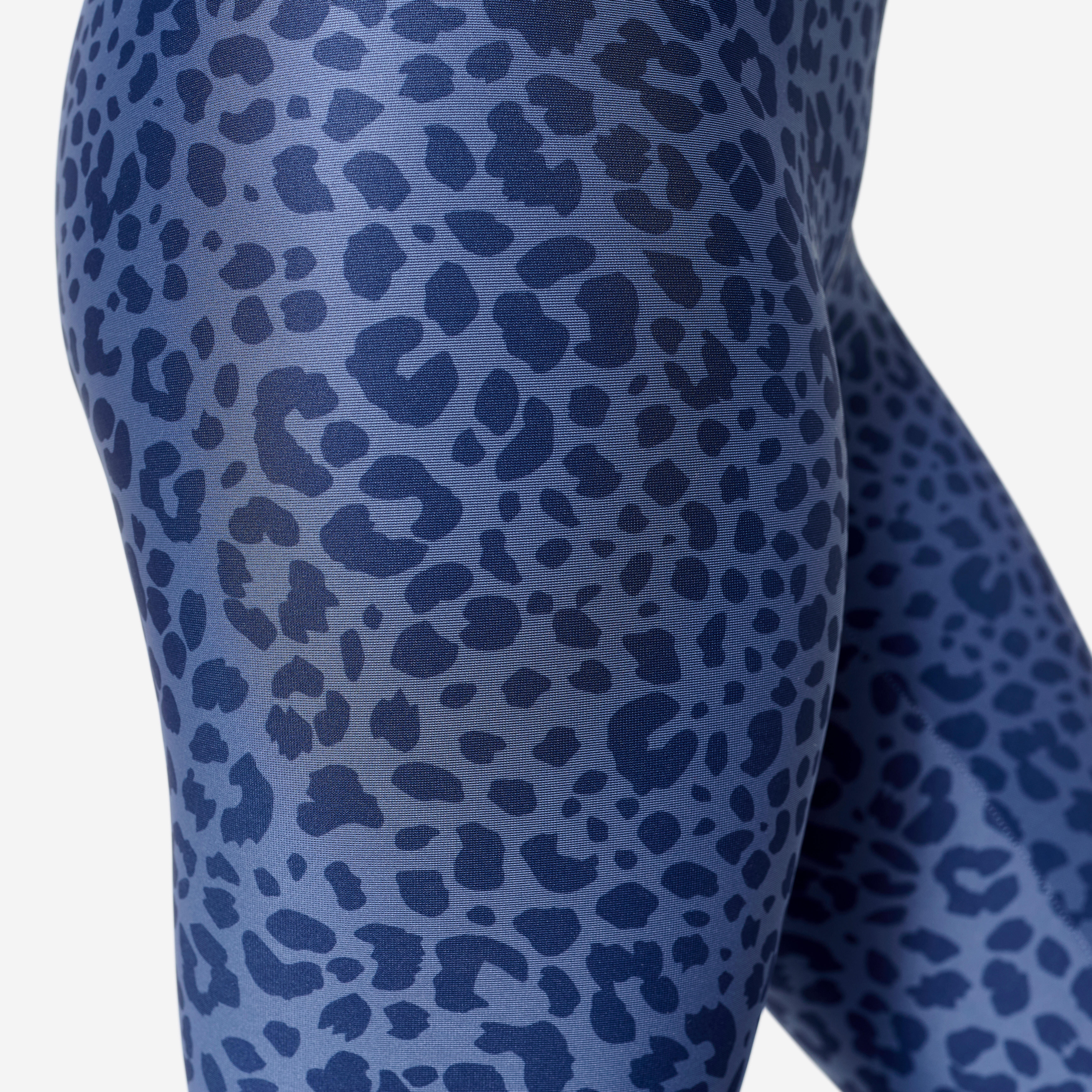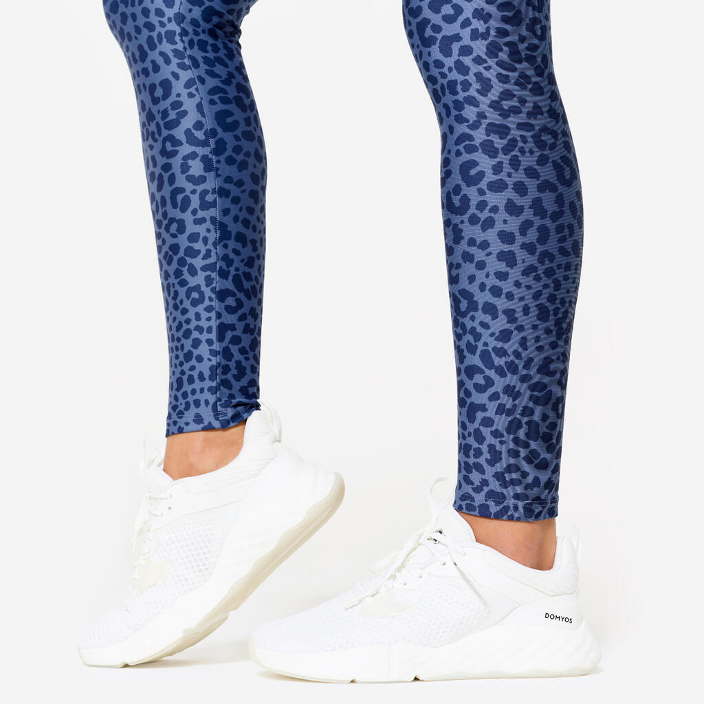 Legging de fitness taille haute femme, imprimé léopard bleu