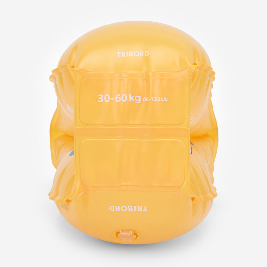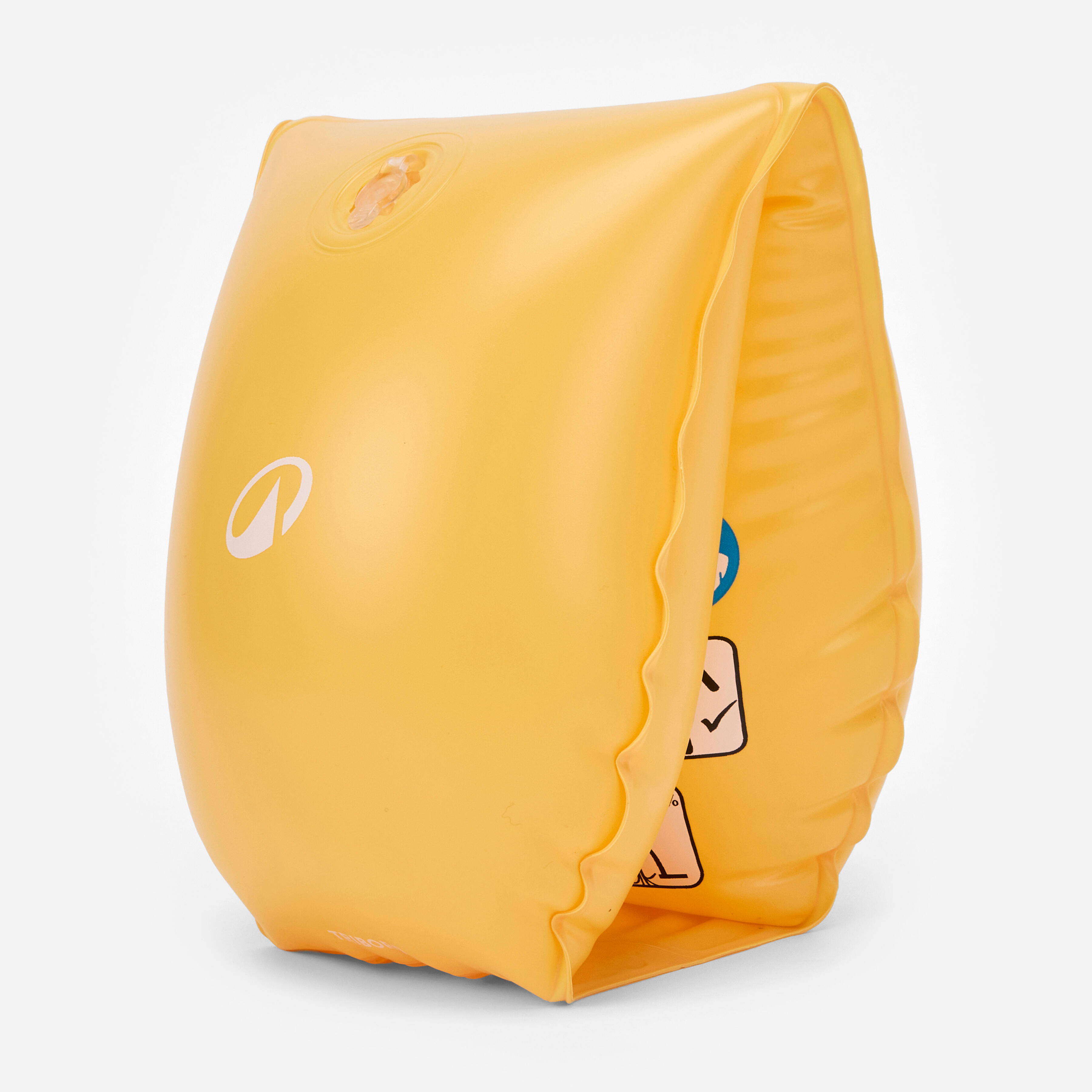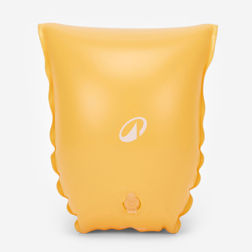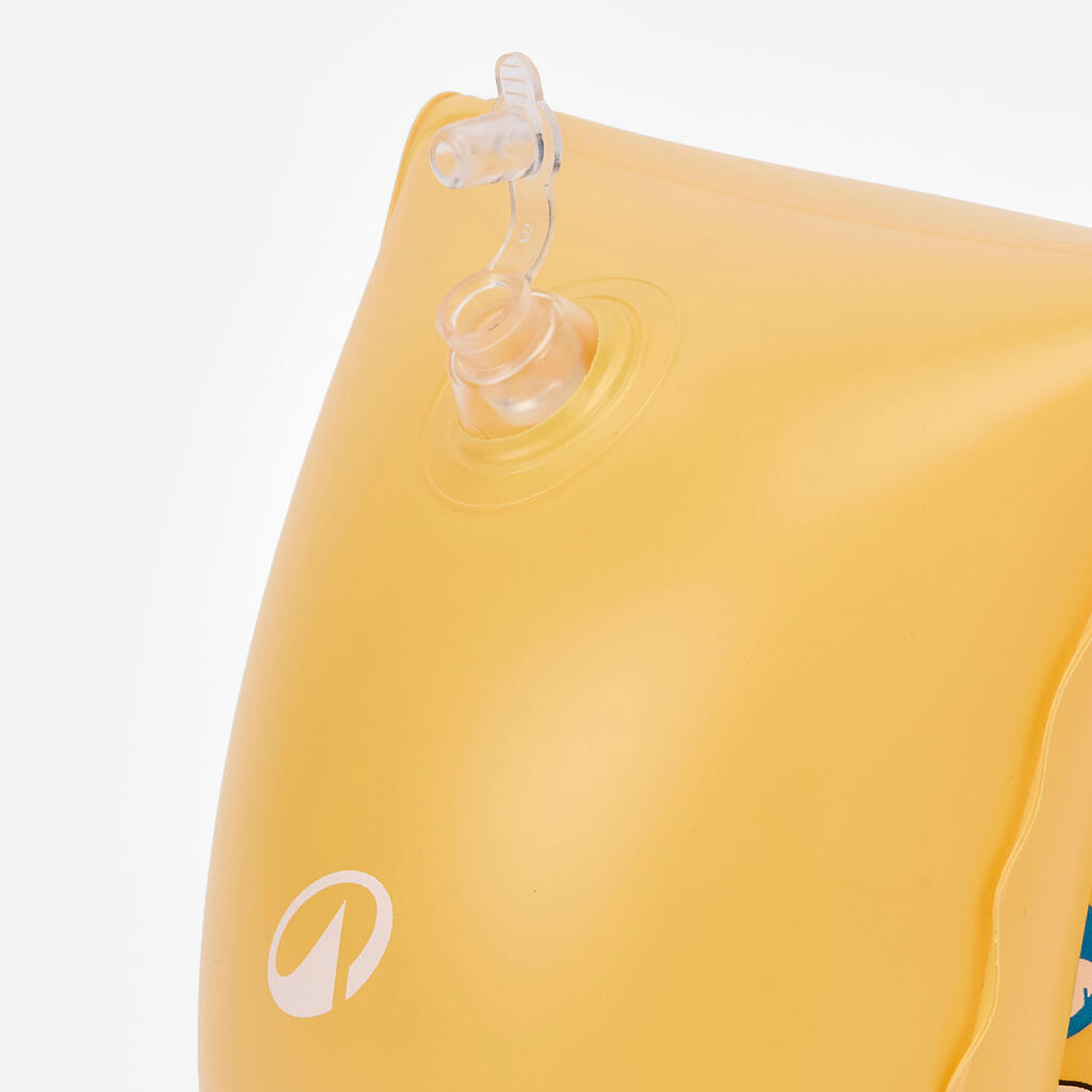 Brassards piscine gonflables composés de deux chambres de gonflage et munis de valves avec clapets anti-retour. Idéal pour la découverte aquatique des enfants sous surveillance constante d'un adulte.